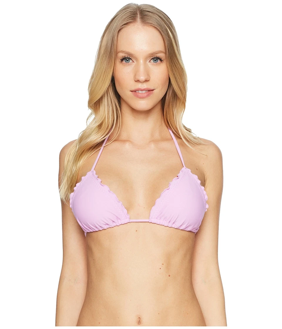 A little bikini top that’s hugely hot. Triangle bikini top in a versatile solid hue. Sliding triangle cups. Wavy edges enhance the cups. Removable contour pads. Adjustable ties at the neck and back. 80% nylon 20% spandex. Hand wash cold dry flat. Made in Colombia. If you’re not fully satisfied with your purchase you are welcome to return any unworn and unwashed items with tags intact and original packaging included.