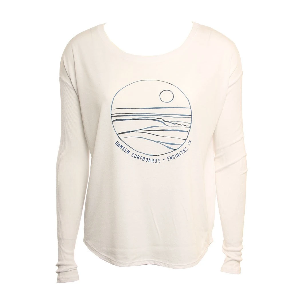 The Hansen Womens In The Lineup Long Sleeve is a 65% Polyester 35% Viscose shirt with front screen print. / Womens Shirt In The Lineup Long Sleeve in White / Small / Polyester / Hansen