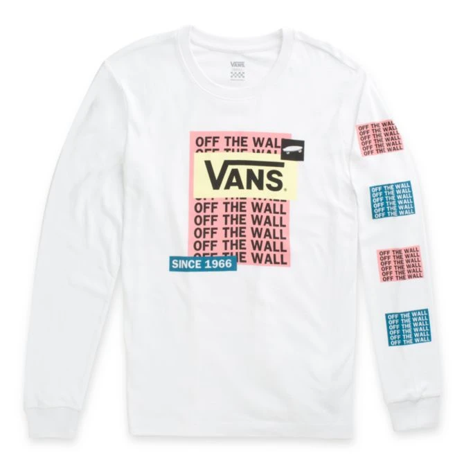 The Layers Of Loud Long Sleeve Boyfriend T- Shirt is a 100% heavy cotton jersey boyfriend tee with logo graphics at the front and sleeve. / Womens Layers Of Loud Long Sleeve Boyfriend Tee Shirt in White / X- Small / Cotton / Vans